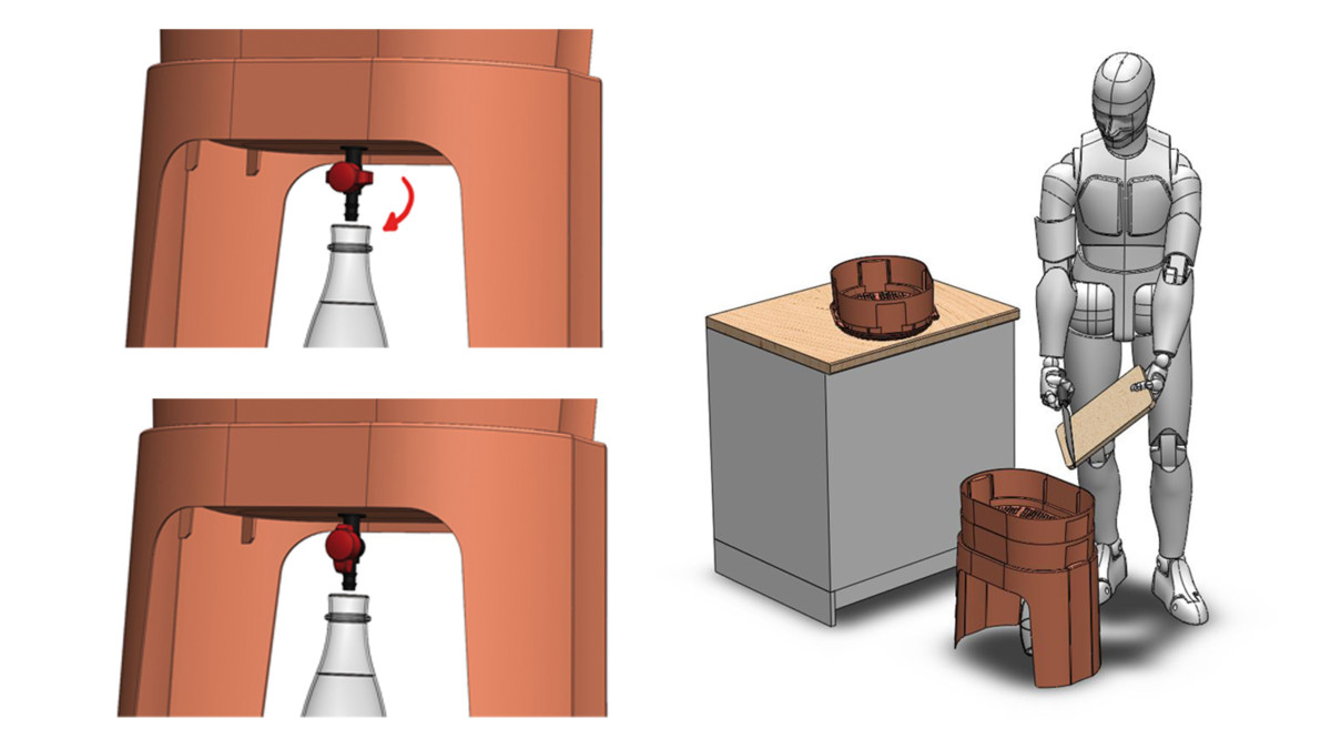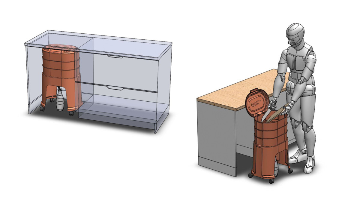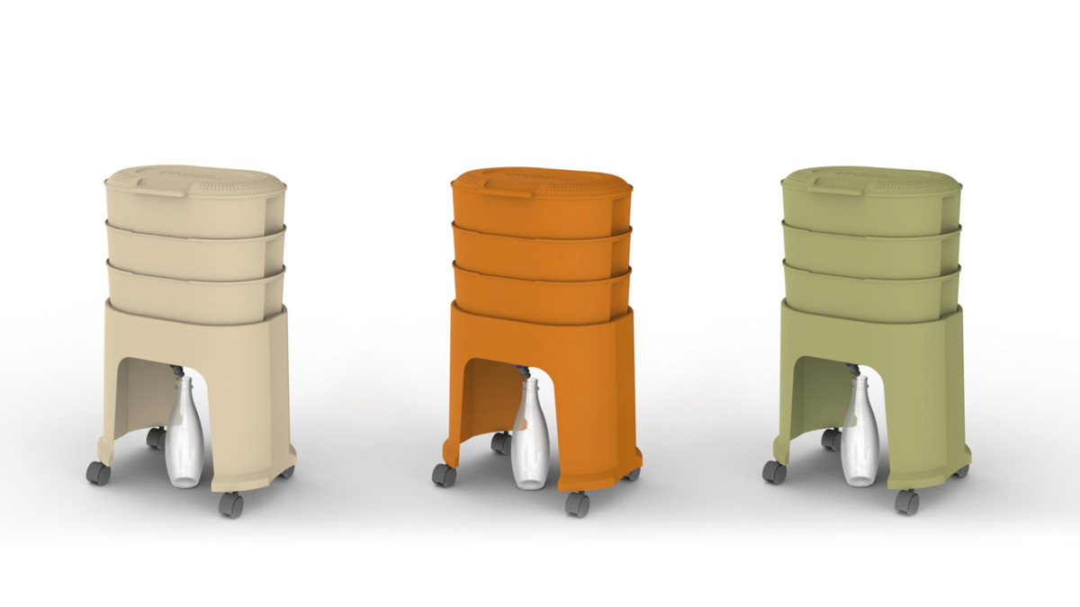 Le design proposé hybride les codes des arts de la table et ceux du design de mobilier d’intérieur. L’enjeu est de laisser le composteur dans le champ de vision de l’appartement et le rendre très accessible à toutes heures de la journée.